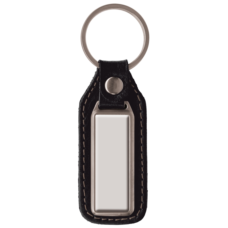 Kovinski pravokotni obesek iz pravega usnja z enostransko ploščico.