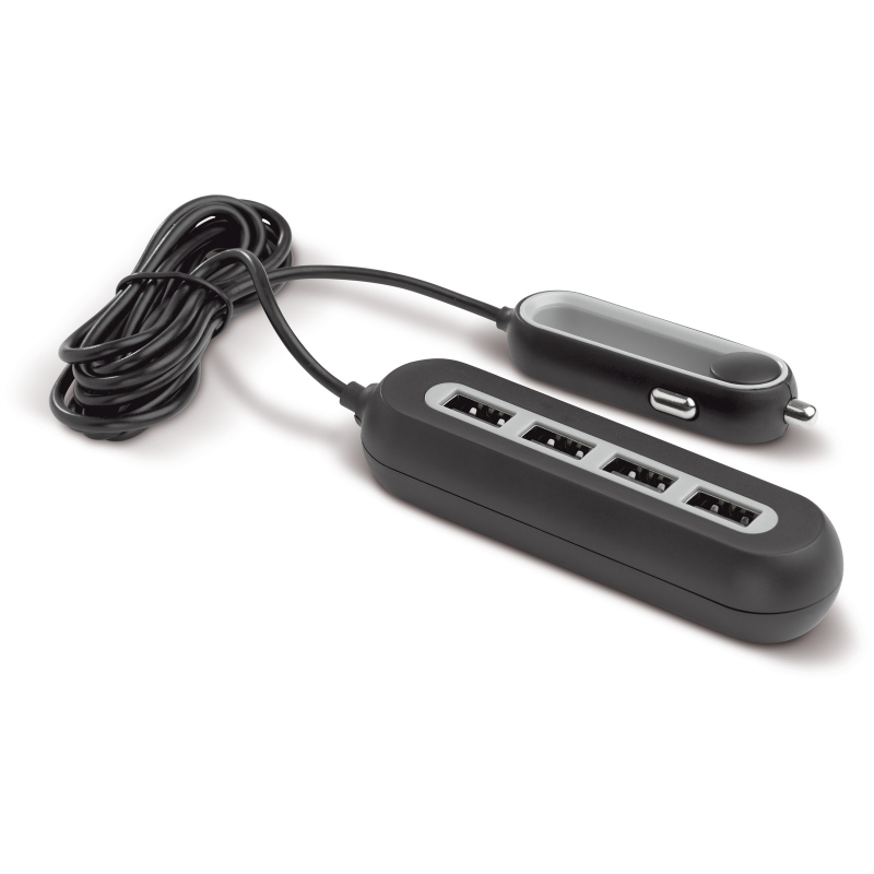 - Predstavljamo vam avto polnilnik z 4 USB izhodi, in tako omogoča polnjenje do 4 naprav hkrati.